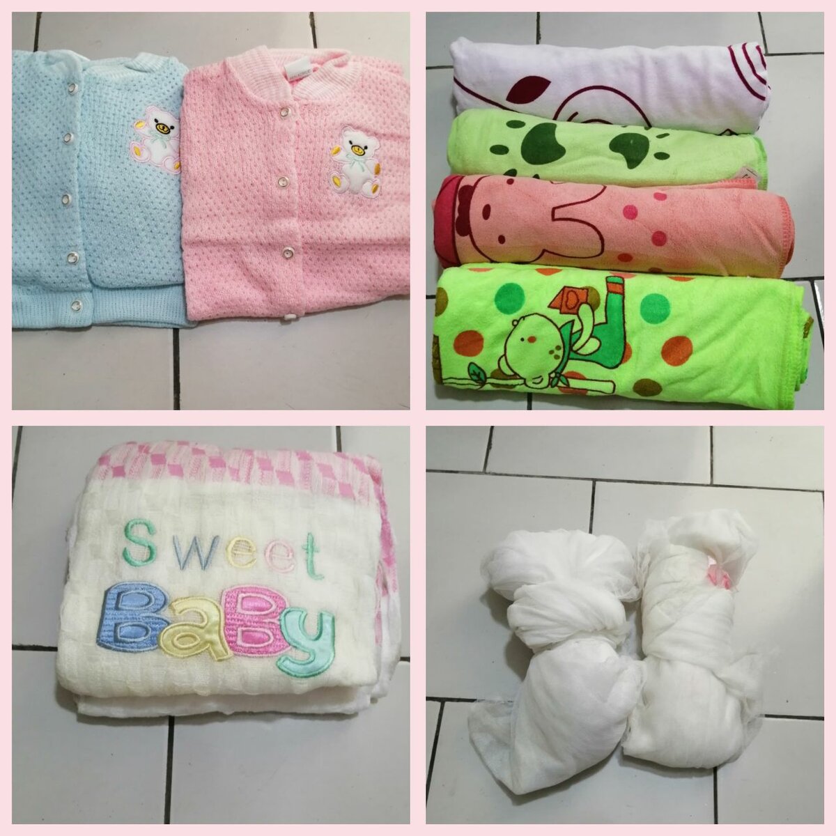 serviettes en 3, drap en coton, grenouillères,sac