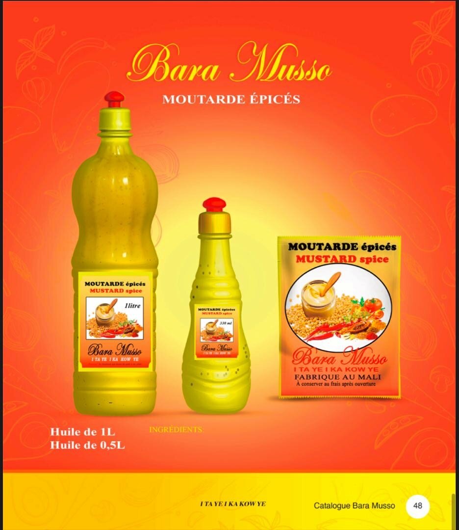 Découvrez la moutarde épicée Bara Musso, parfaite pour rehausser vos plats. Disponible en bouteilles de 0,5L et 1L. Idéale pour sauces et marinades, elle apportera une touche piquante à vos recettes. Fabriquée au Mali avec des ingrédients soigneusement sélectionnés. Un choix incontournable pour les amateurs de saveurs intenses!