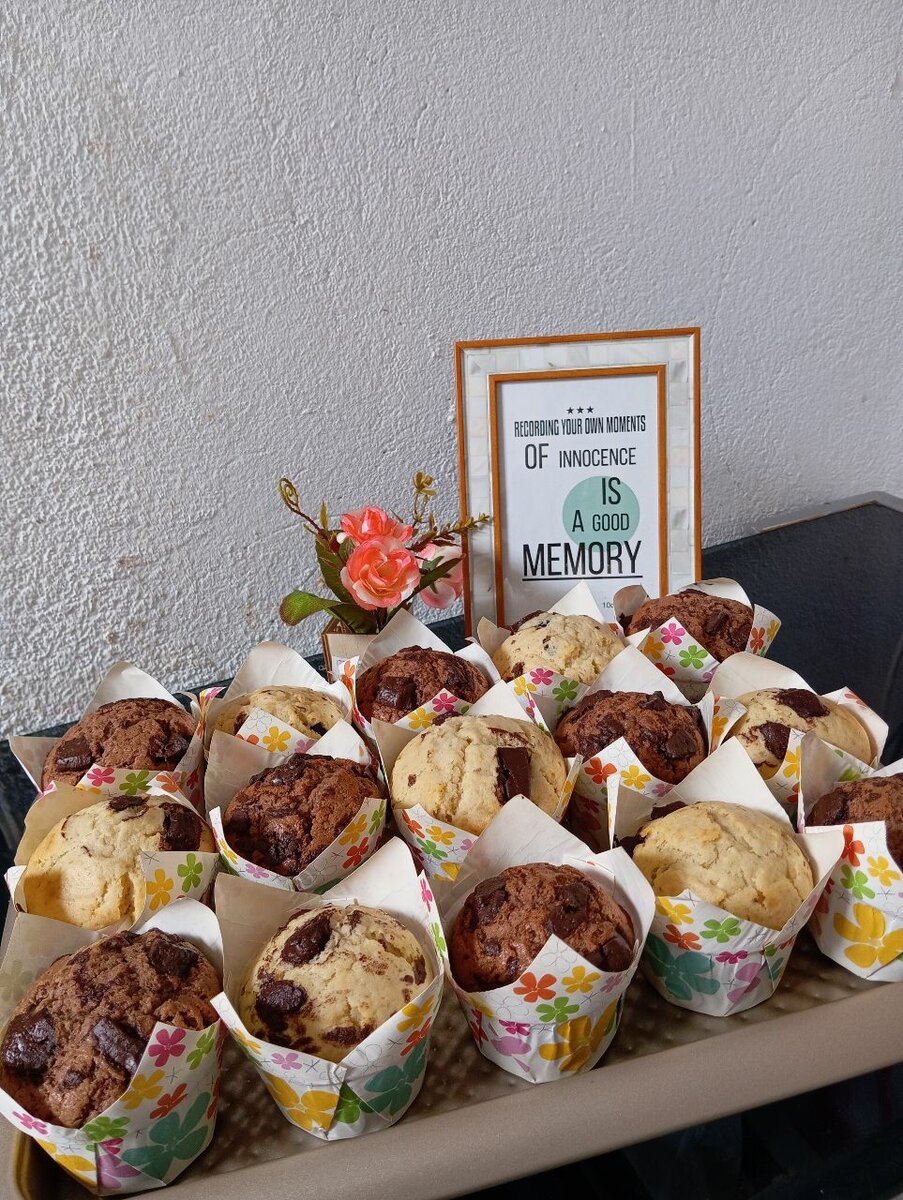 Savourez ces muffins moelleux au chocolat, parfaits pour un goûter ou une pause café. Chaque bouchée offre un mélange exquis de chocolat fondant et de pâte tendre. Présentés dans de jolies caissettes florales, ils ajoutent une touche de couleur à votre table. Idéal pour partager avec des amis ou lors d'événements spéciaux!