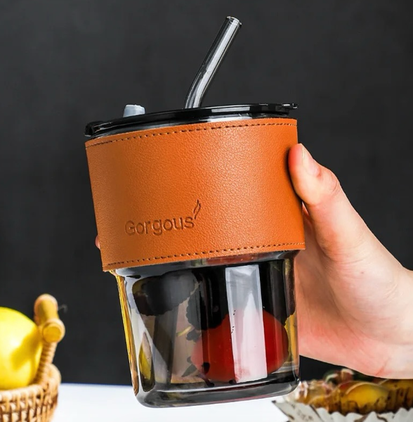 380 ml glass mug with straw