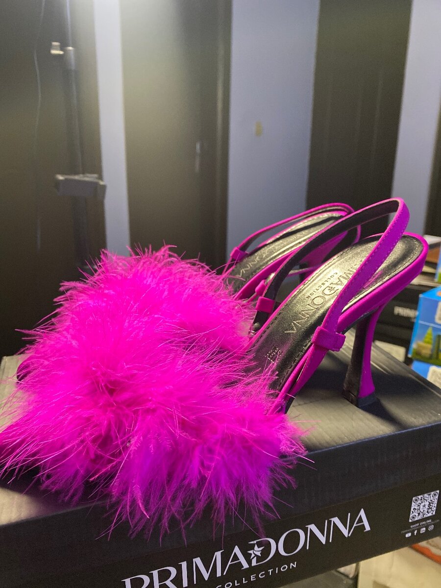 Ajoutez une touche de glamour à votre tenue avec ces mules à talons hauts ornées de plumes fuchsia. Parfaites pour une soirée chic ou un événement spécial. Talon élégant et confortable, conçu pour attirer tous les regards.