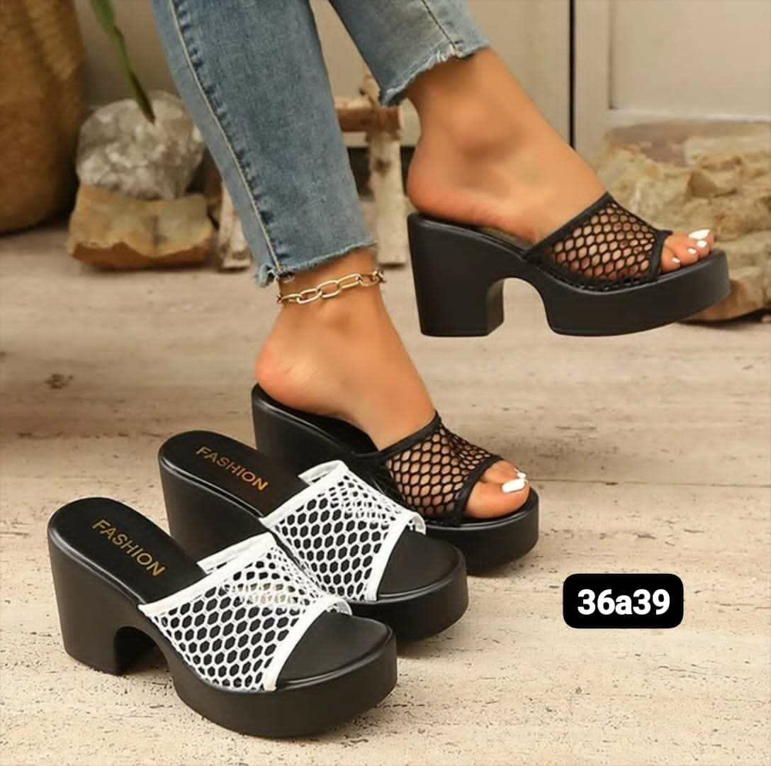Découvrez l'élégance et le confort de ces mules à semelles compensées. Idéales pour un look à la fois chic et décontracté, elles offrent un ajustement parfait grâce à leur design en maille aérée. Parfaites pour vos sorties estivales ou une touche originale à votre tenue quotidienne.