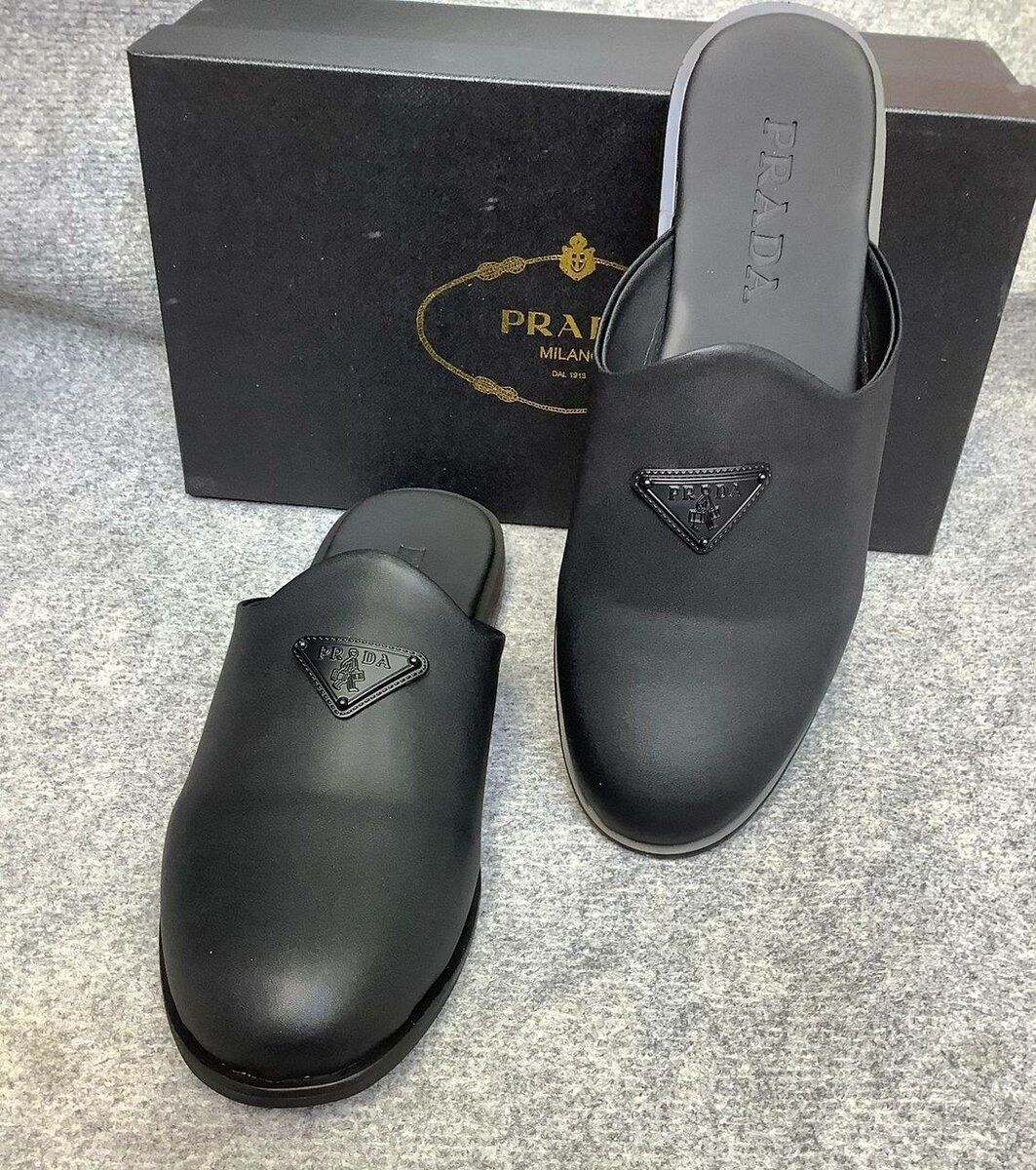 Mules en cuir noir pour hommes, offrant un style sophistiqué et un confort optimal. Parfaites pour un usage quotidien ou des occasions spéciales. Design moderne avec logo discret.
