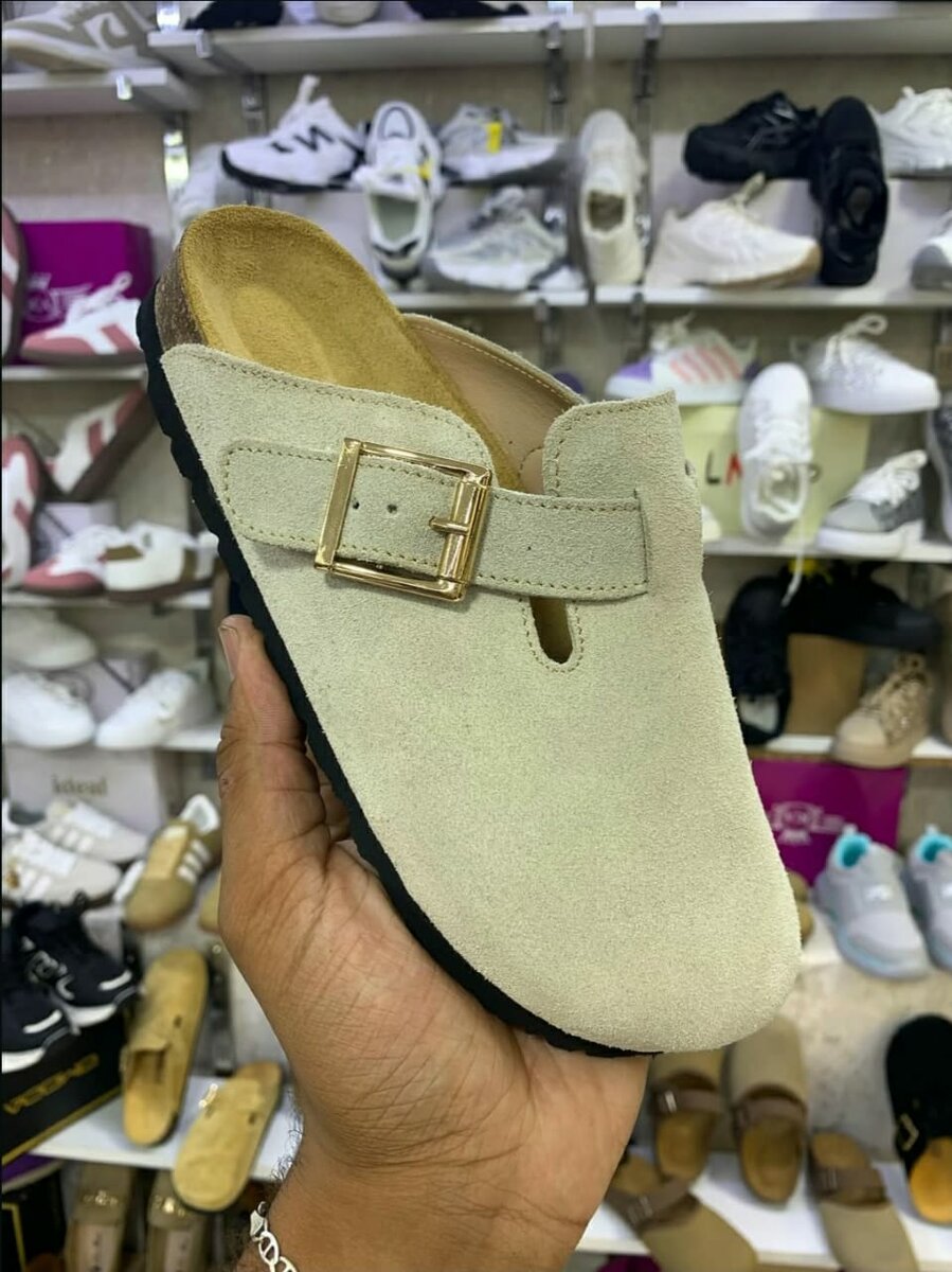 Mules en daim avec boucle