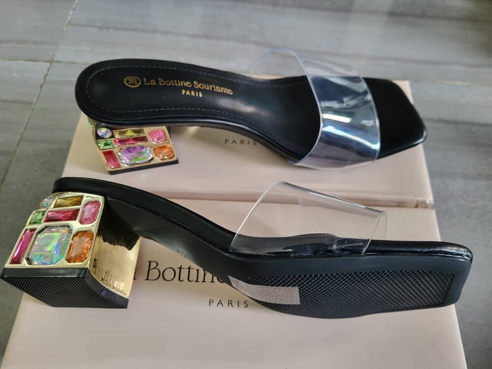 Élevez votre style avec ces mules transparentes ornées de talons flair colorés. Parfaites pour une soirée élégante ou une sortie estivale, elles allient confort et sophistication moderne. La Boîtine Souriante vous garantit qualité et design unique, faciles à assortir avec n'importe quelle tenue.