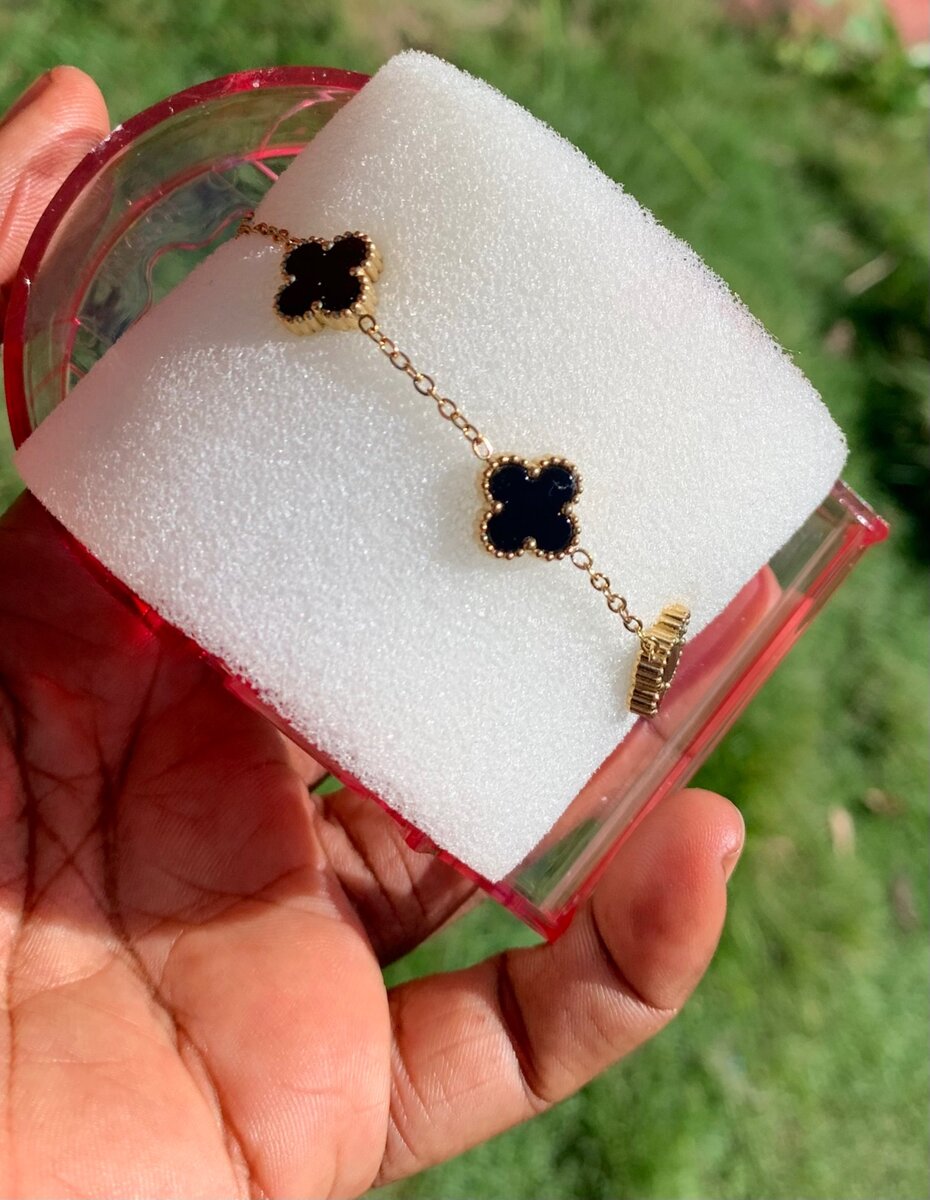 Multi Pearl Clover bracelet (black)