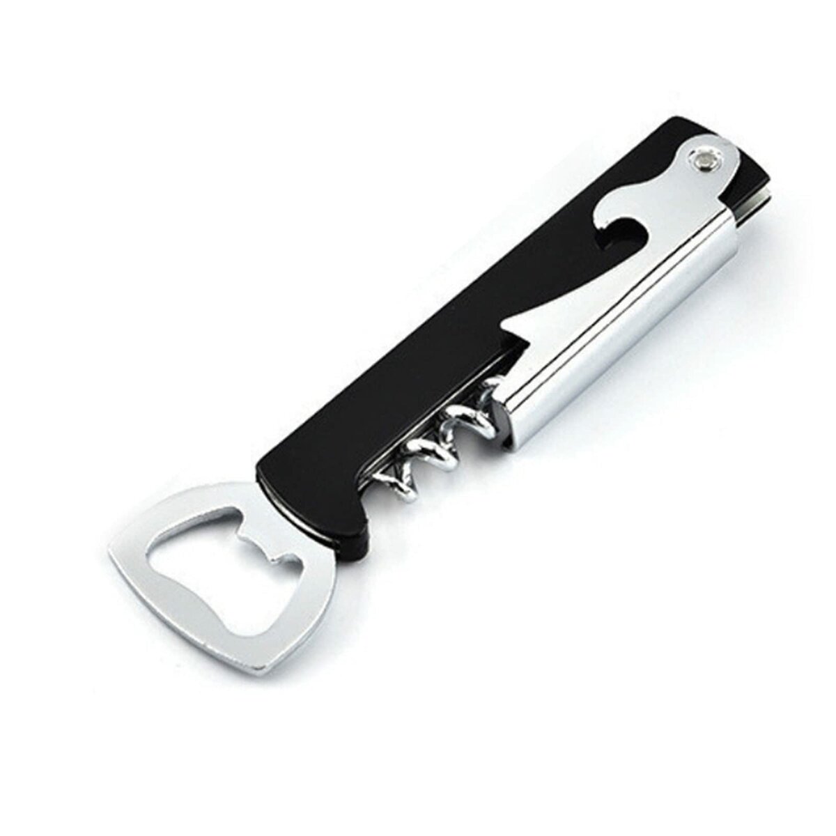 This versatile multi-function bottle opener is perfect for any kitchen or bar. Featuring a corkscrew, foil cutter, and bottle cap opener, it's designed for convenience and ease. Made with durable materials for long-lasting use, it's perfect for wine enthusiasts and party hosts.