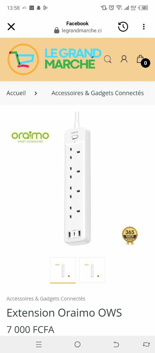 Optimisez votre espace avec la multiprise Oraimo OWS. Dotée de prises multiples et ports USB, elle est parfaite pour la maison et le bureau. Design élégant et sécurité assurée.