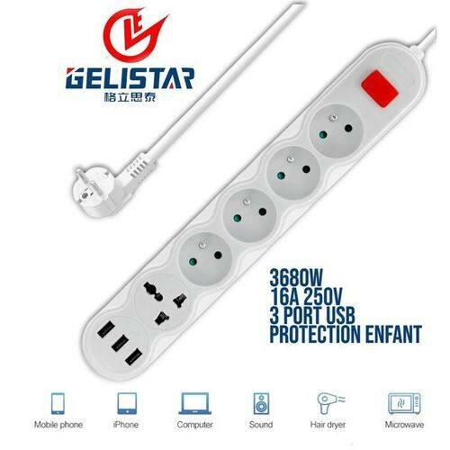 Rallonge Multiprise 3 Trous Et 2 PORT USB - Blanc