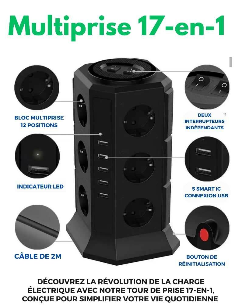 12 prises + 5 ports USB = Alimentez 17 appareils en même temps !