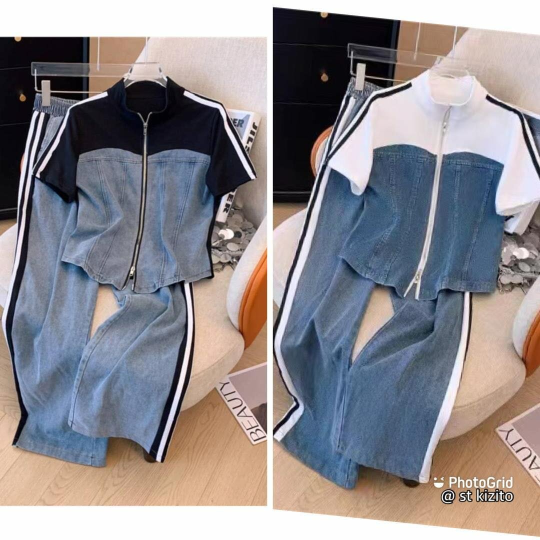 Ensemble pantalon et haut jeans mêlé de coton M L XL 2XL 3xl