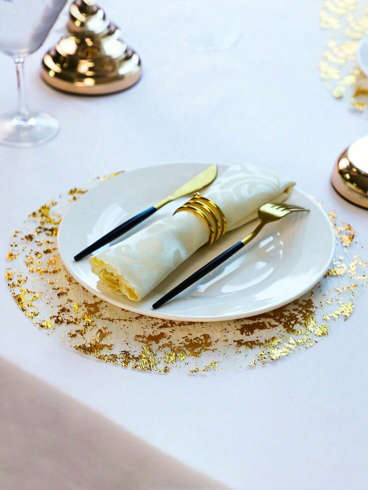 Ajoutez une touche de glamour à votre table avec ces napperons dorés étincelants. Parfaits pour les dîners spéciaux, mariages ou fêtes, ils protègent votre table tout en rehaussant votre décoration. Leur design élégant et leur finition en paillettes feront briller chaque occasion.