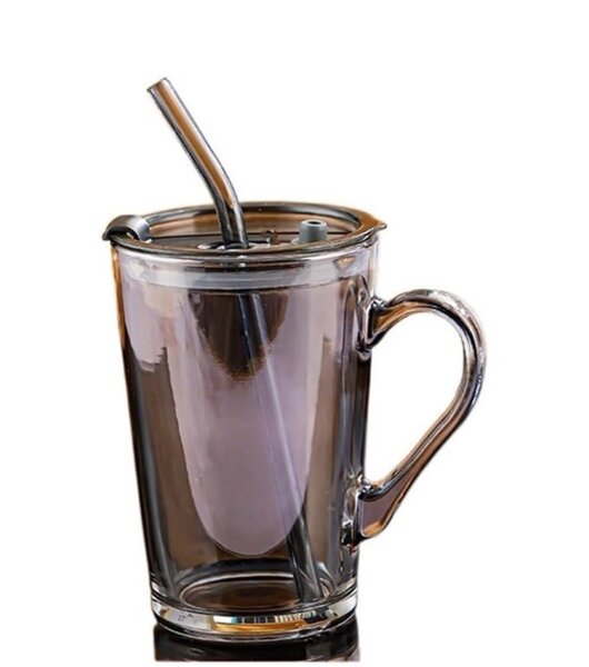Transparent Glass Tumbler Mug With Spill-Proof Lid and Straw