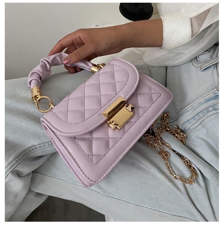 DIAMOND PLAID SOLID COLOR HANDBAG