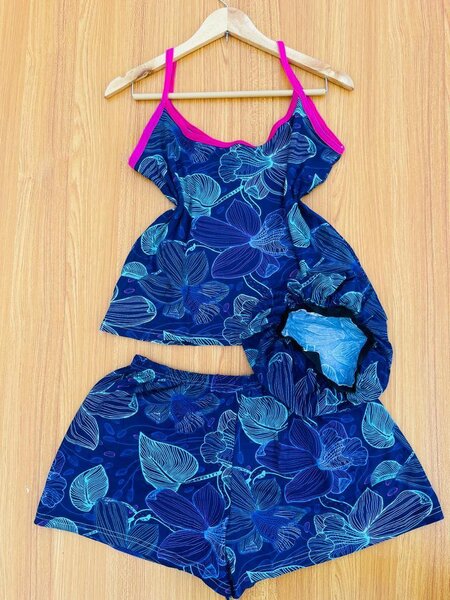 3 in 1 sexy and comfy nightwear for ladies. 100% COTTON. Very thick fabric. Good texture. Very neat and sexy. Comes in free size