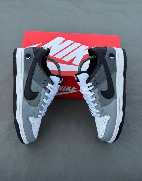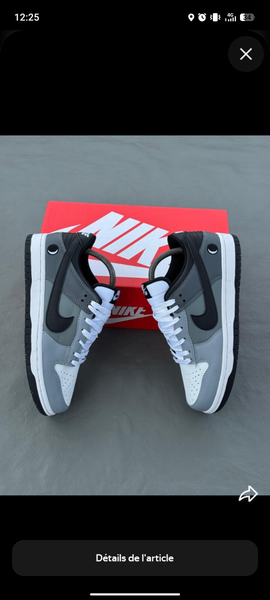 Découvrez les Nike Dunk Low, des baskets élégantes et confortables. Parfaites pour un usage quotidien ou pour les amateurs de sneakers. Gris et blanc, avec une semelle blanche et des lacets blancs, elles sont idéales pour compléter votre tenue décontractée.