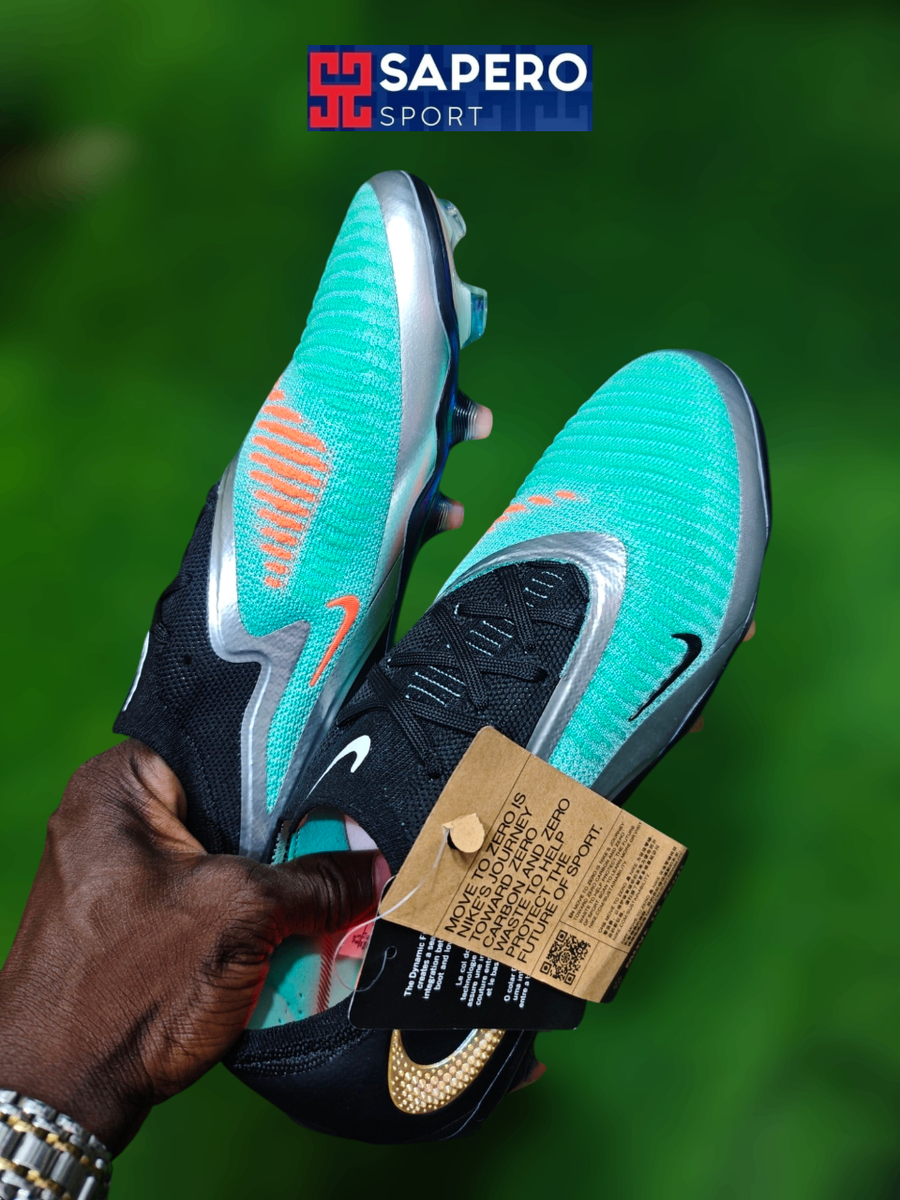 Brillez sur le terrain avec ces crampons de football audacieux, alliant un vert menthe rafraîchissant à des touches d'orange flashy et des détails argentés. Conçus pour un contrôle de balle ultime, ils sont parfaits pour les joueurs qui veulent laisser leur marque.