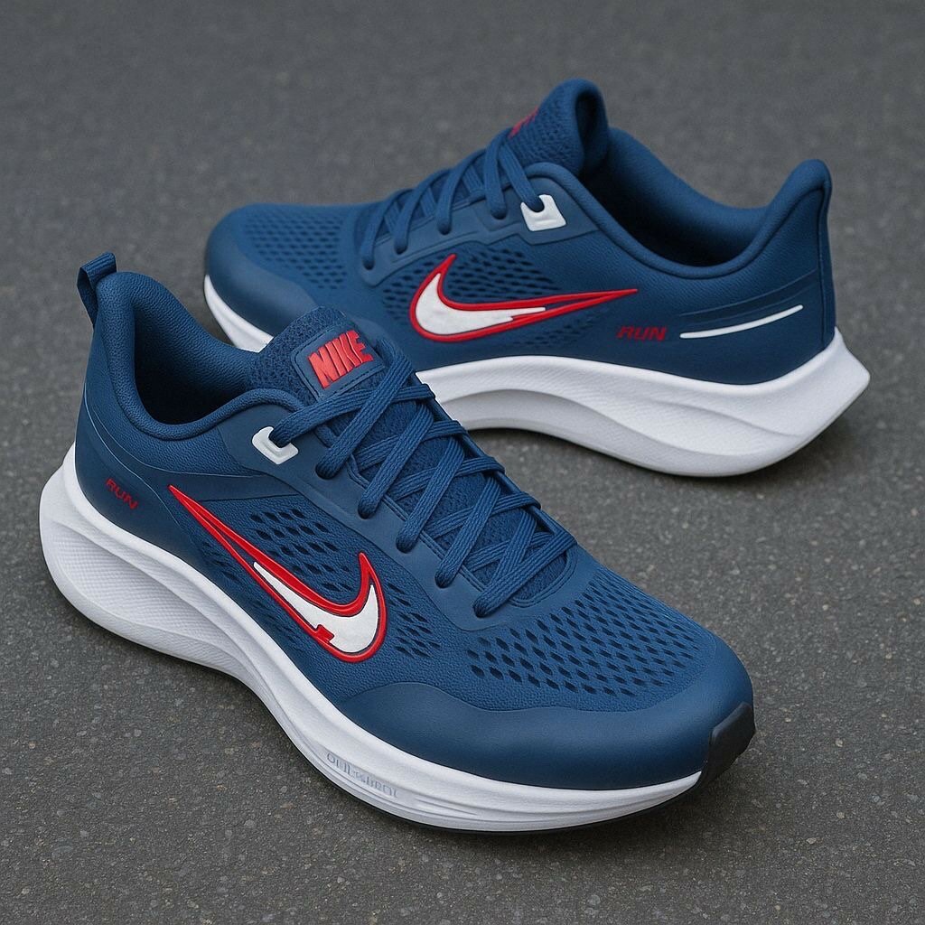 Logo Nike : Grand Swoosh blanc bordé de rouge sur les côtés, très visible et dynamique