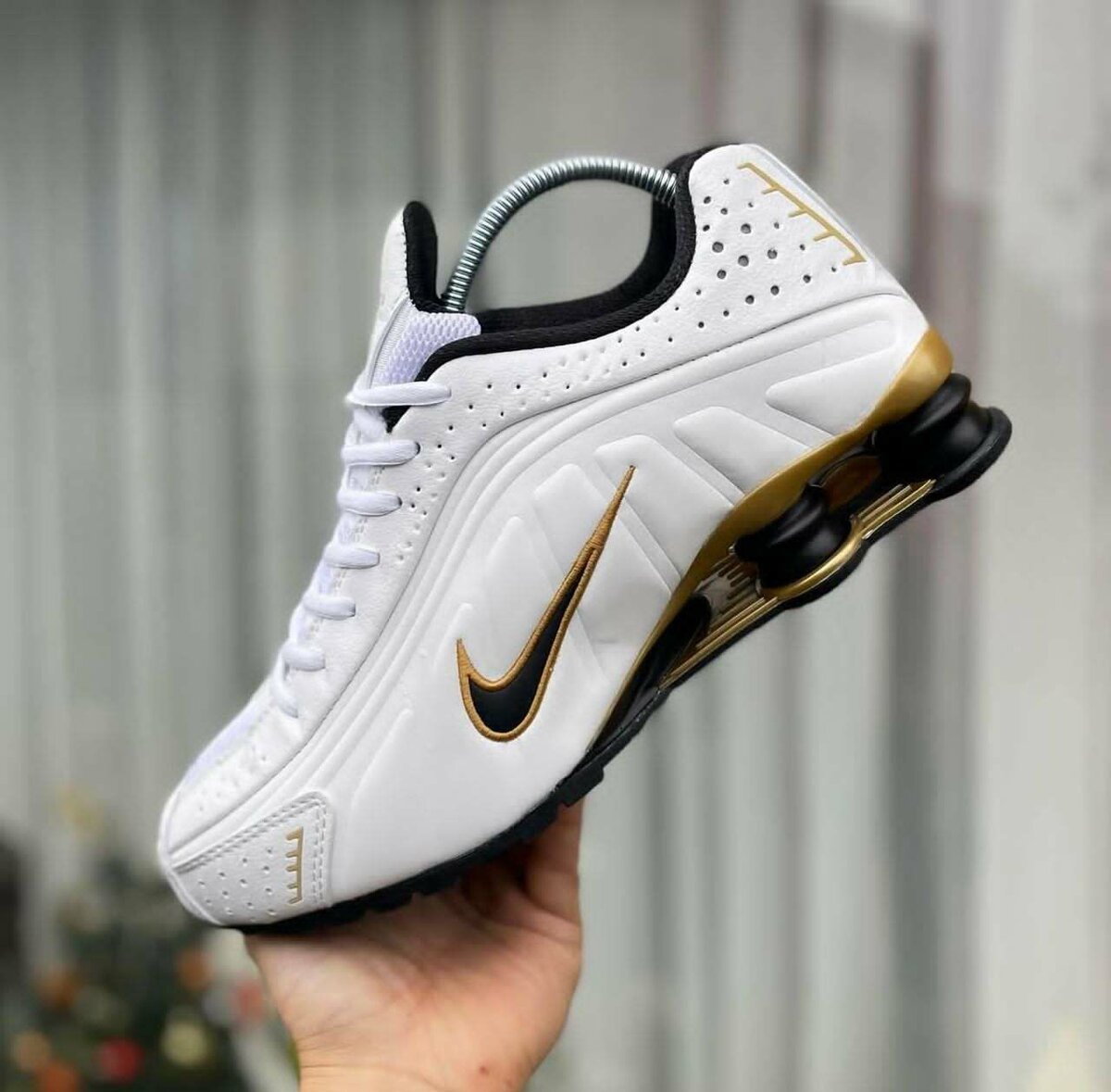 Découvrez ces chaussures de sport blanches au design moderne avec des accents dorés. Parfaites pour le running ou le quotidien, elles offrent confort et style. Idéal pour les athlètes et les passionnés de mode.