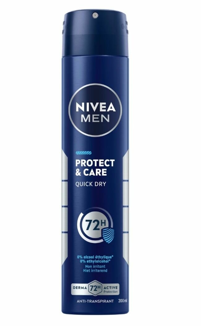 Le déodorant NIVEA Men Protect & Care offre 72 heures de protection efficace. Formule Quick Dry pour une sensation immédiate de fraîcheur. Idéal pour les hommes actifs.