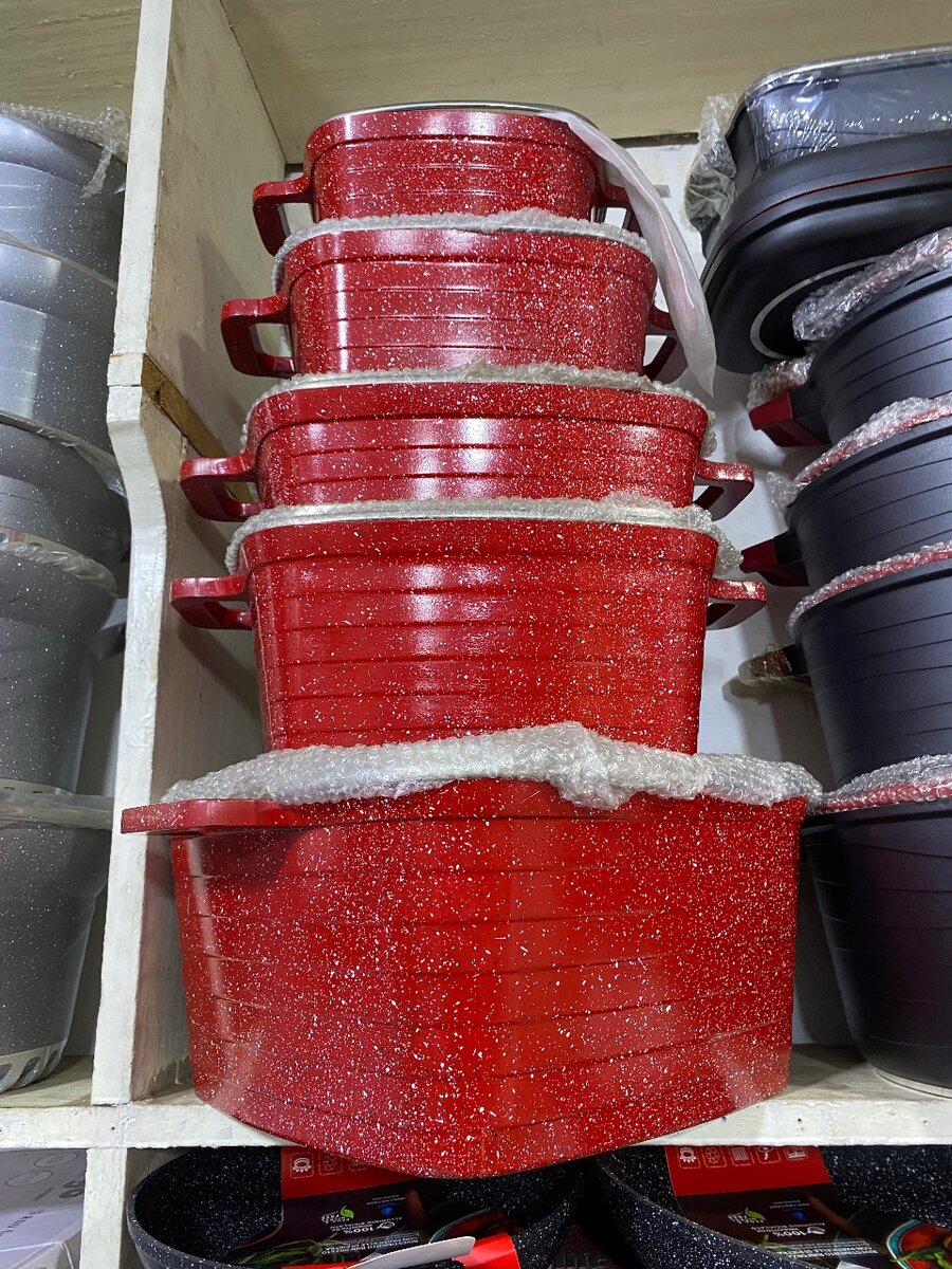 5pc DIECAST NON-STICK STOCKPOT SET WITH GRANITE EFFECT
