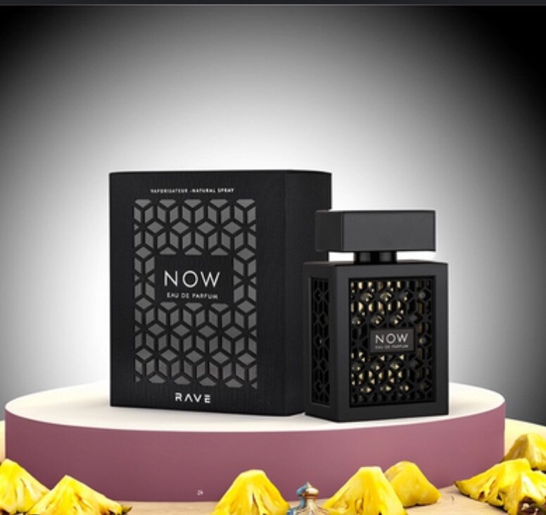 Now by RAVE is a Woody Aromatic fragrance for men. This is a new fragrance. Now was launched in 2022. Top notes are Pineapple, Bergamot, Black Currant and Apple; middle notes are Patchouli, Birch, Moroccan Jasmine and Rose; base notes are Musk, Vanilla, Oakmoss and Ambergris.