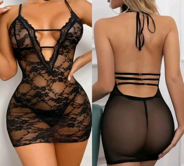 Élégante nuisette en dentelle transparente noire avec motifs rouges, idéale pour des soirées romantiques. Offre confort et séduction avec ses découpes raffinées et ses bretelles ajustables. Parfait pour surprendre et séduire.