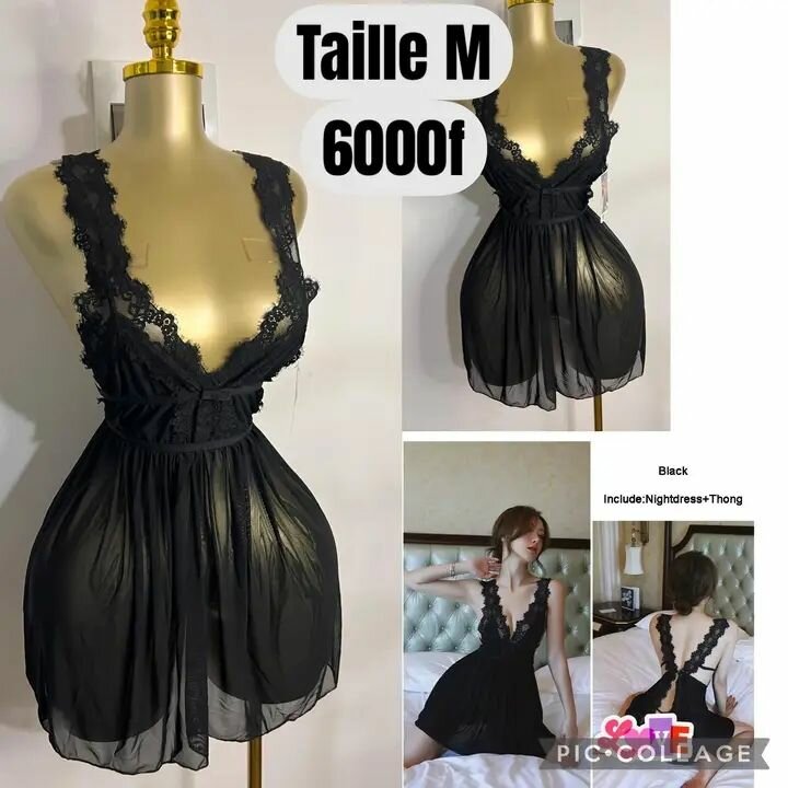 Nuisette élégante en dentelle noire, taille M. Pour des nuits confortables et glamour, inclut un string assorti. Parfaite pour se sentir séduisante à la maison ou pour une occasion spéciale. Tissu doux et confortable, design sexy et élégant. Idéale pour offrir ou se faire plaisir.