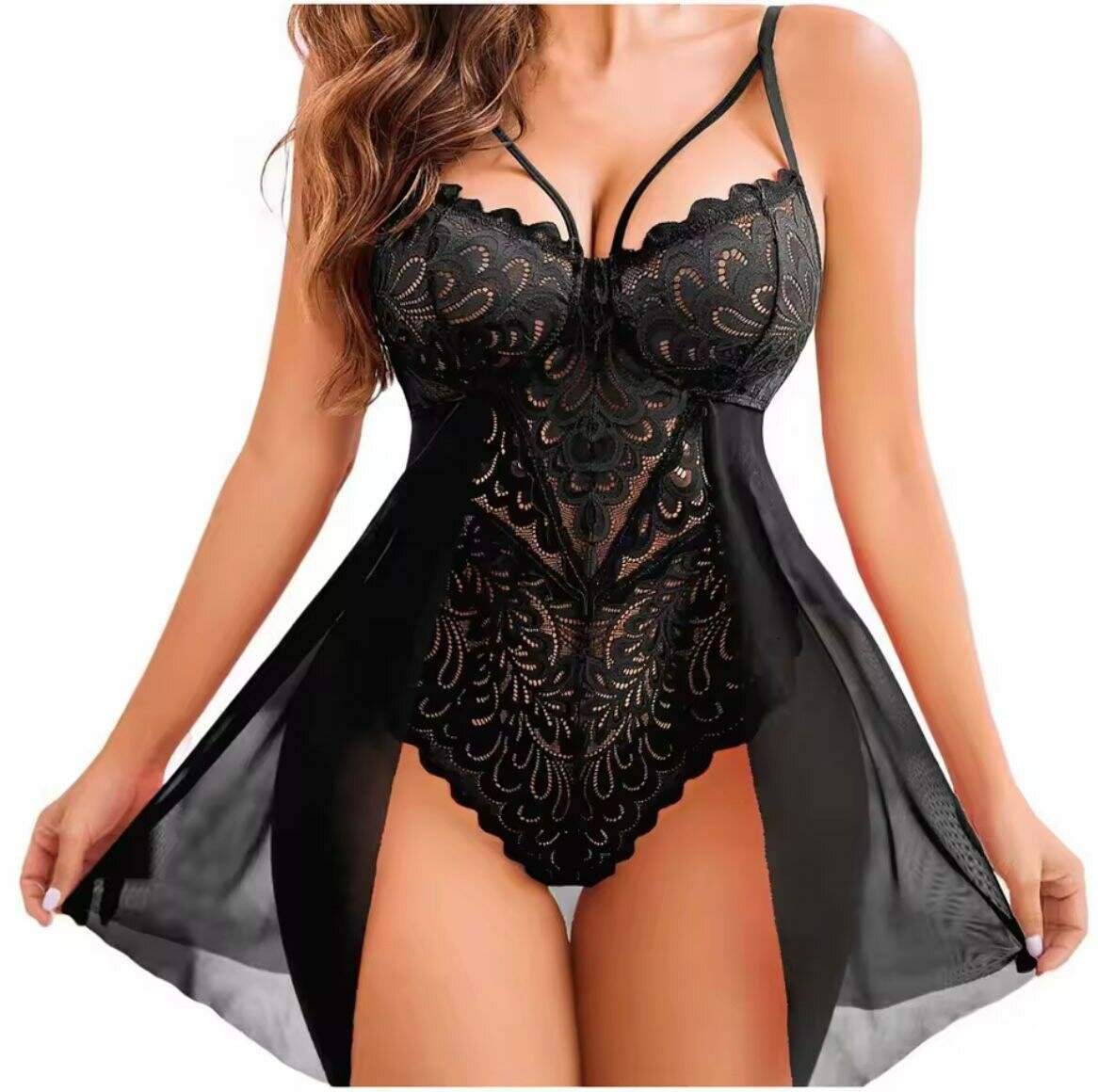 Découvrez la nuisette en dentelle noire élégante et séduisante! Conçue pour sublimer votre silhouette, elle est idéale pour une soirée spéciale. Matières douces et confortables, parfait cadeau pour elle.