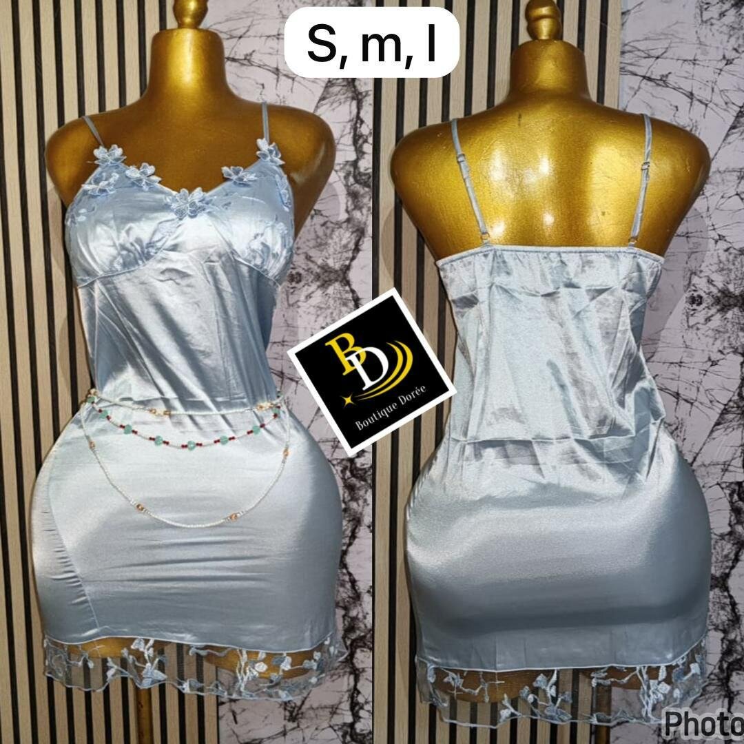 Cette nuisette satinée en bleu ciel est l'incarnation de l'élégance et du confort. Dotée de fines bretelles et de détails floraux délicats, elle offre un ajustement parfait pour une nuit reposante ou une soirée spéciale. Idéale pour les femmes recherchant sophistication et douceur. Disponible en tailles S, M et L.