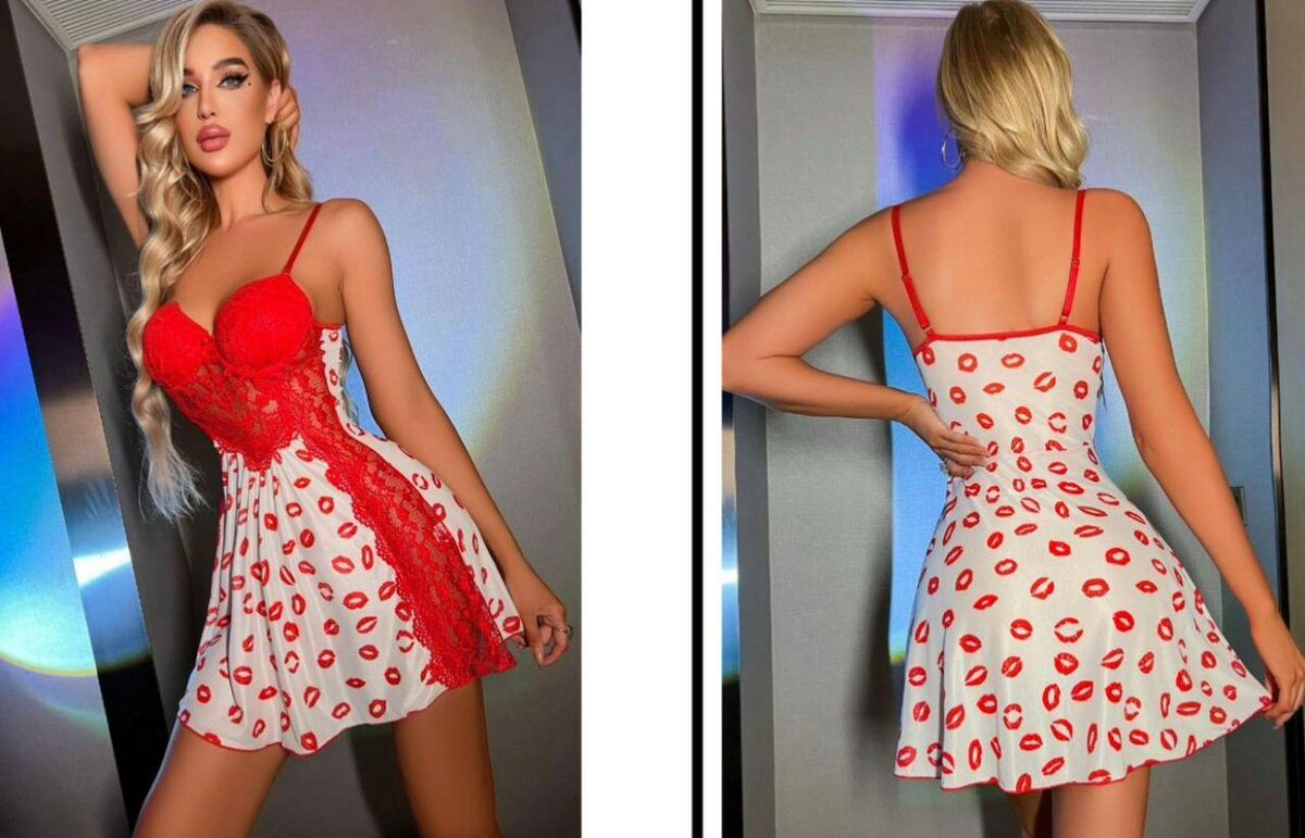 Cette nuisette en dentelle rouge avec motifs de baisers est idéale pour des soirées romantiques. Conception séduisante, tissu doux pour le confort, parfait pour offrir ou se faire plaisir.