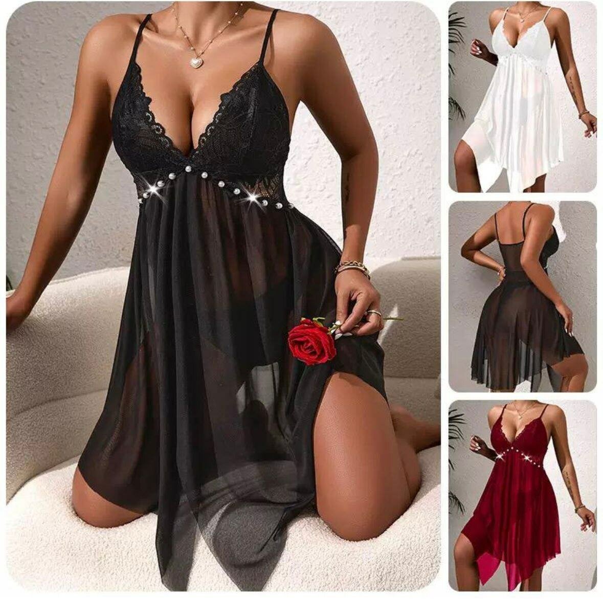 Découvrez notre nuisette en dentelle transparente, parfaite pour des soirées spéciales. Avec ses détails en strass et sa coupe flatteuse, elle apporte une touche de glamour et d'élégance. Disponible en plusieurs couleurs, elle est un choix idéal pour toutes les occasions romantiques.