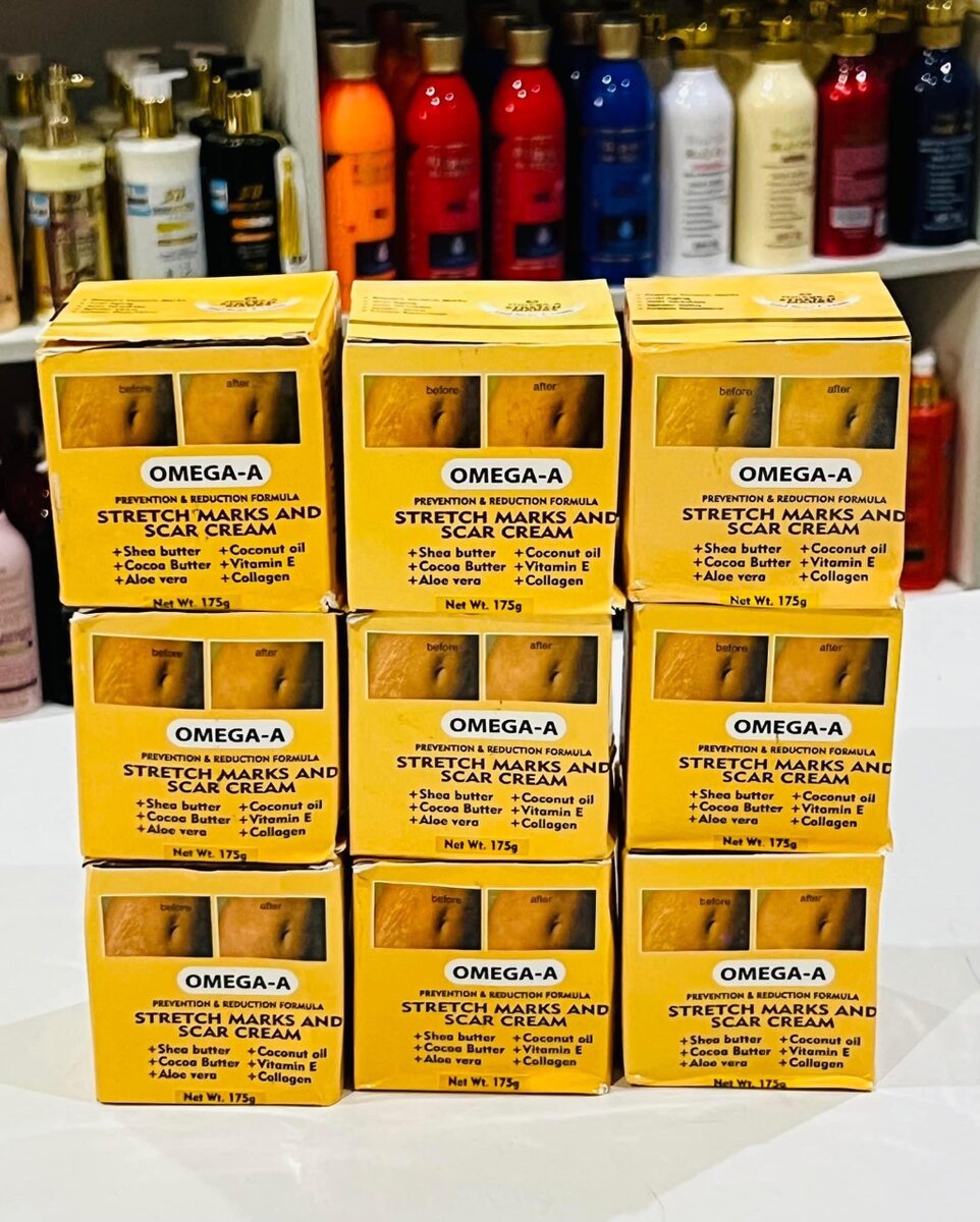 Omega-A Stretch Marks cream Is Highly Rich In Concentrated Snail Extracts,shea butter,coconut oil,cocoa butter,vitamin E,Aloe Vera And Collagen, Which Increases Skin Elasticity, Removes Stretch, and Prevents Abdominal wrinkles.This products fades off the appearance of stretch marks and increases the elasticity of the skin