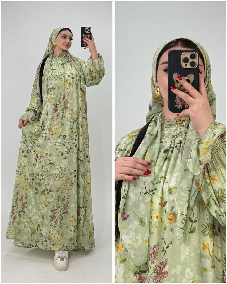 В наличие платье в комплекте с косынкой, низ платья выполнен из плиссировки Ткань : прада шёлк Размер : стандарт в пачке 4 штуки одного цвета ( до 50размер