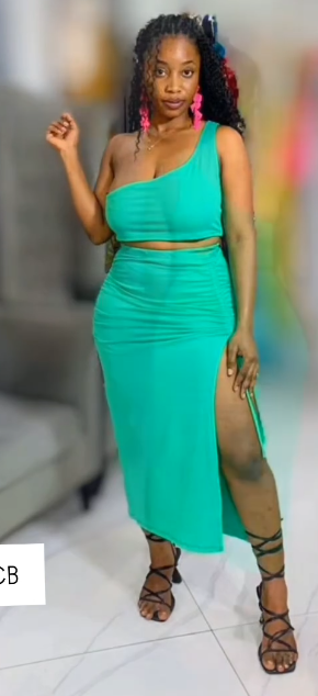 One Arm Two Piece Skirt Set Green