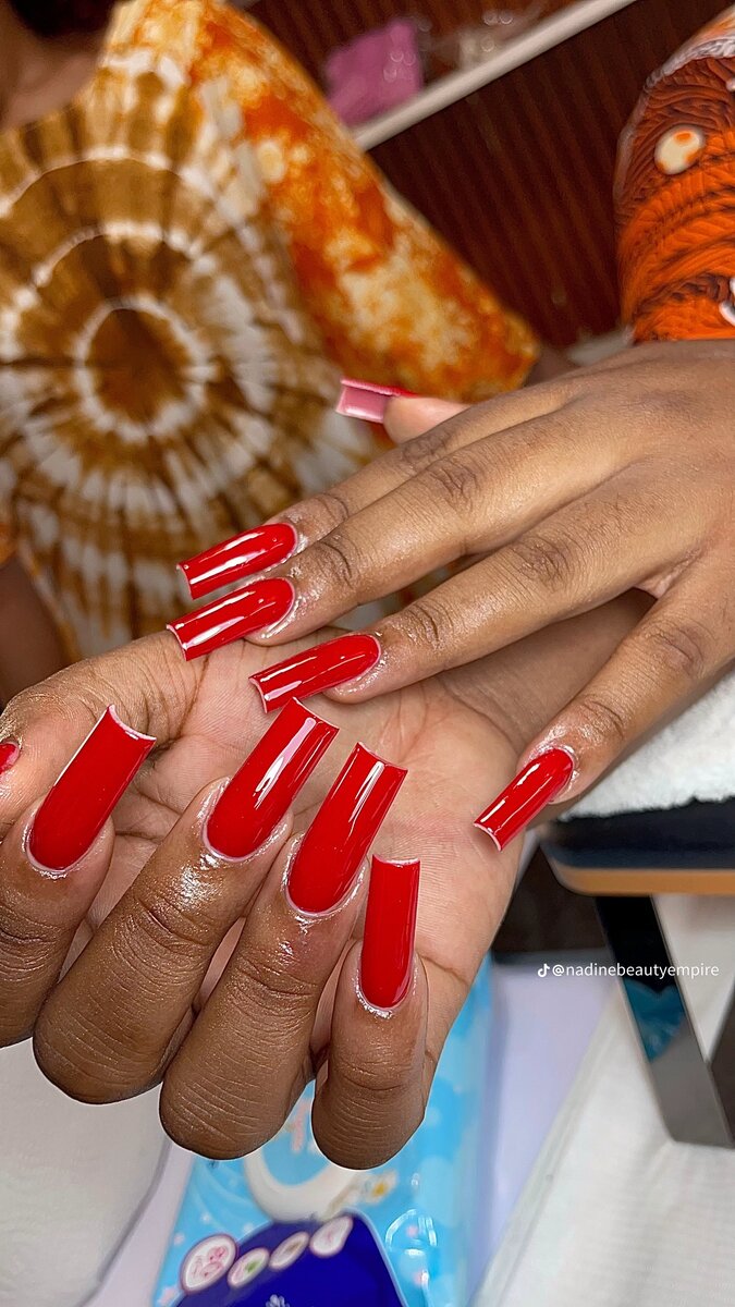 Découvrez l'élégance audacieuse avec ces ongles coffin rouge éclatant. Parfaits pour toute occasion, ces ongles offrent une finition lisse et lumineuse qui ne passera pas inaperçue. Idéals pour sublimer vos tenues de soirée ou ajouter une touche de glamour à votre quotidien.