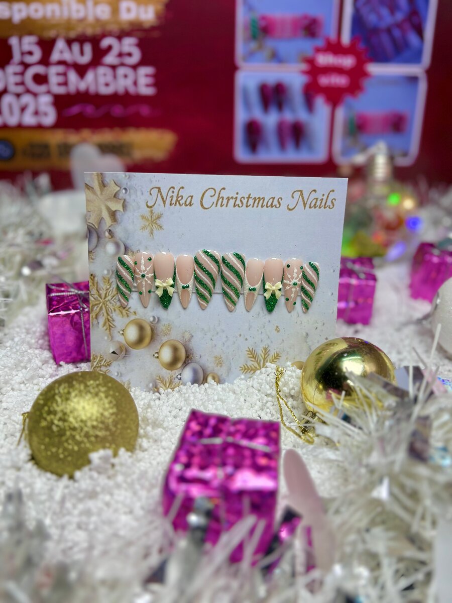 Transformez votre style avec les ongles de Noël Nika ! Design festif et chic pour vos soirées de fête. Facile à appliquer et parfait pour égayer votre look de saison.