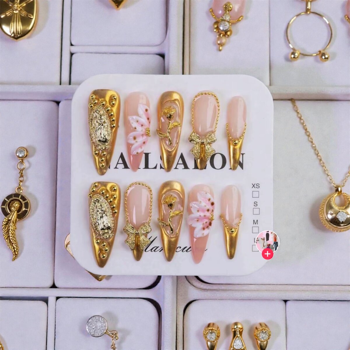 Transformez votre look avec ces ongles press-on dorés magnifiques, ornés de détails floraux et de bijoux. Faciles à appliquer, parfaits pour une soirée spéciale ou un style quotidien chic. Offrez-vous un manucure impeccable en quelques minutes !