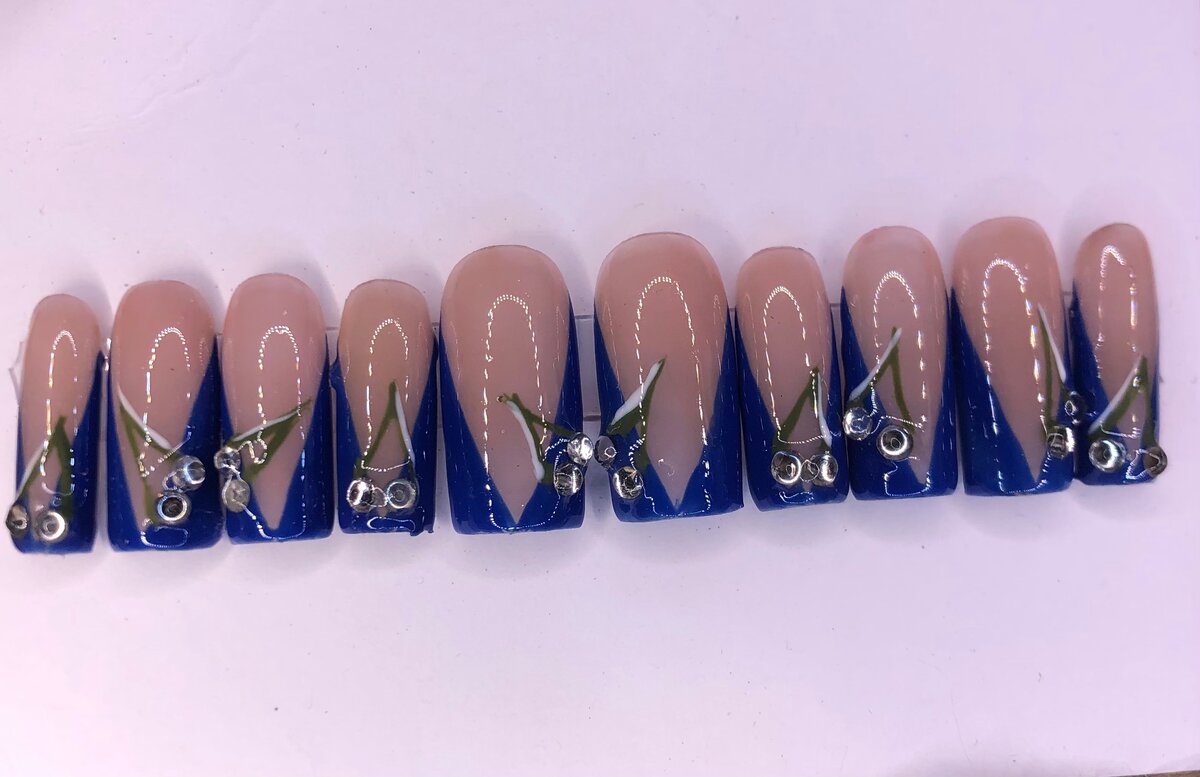 Élevez votre style avec ces ongles press-on élégants en bleu royal et nude. Parfaits pour une soirée glamour ou un look quotidien chic, ils sont faciles à appliquer et réutilisables. Brillez en toute occasion!