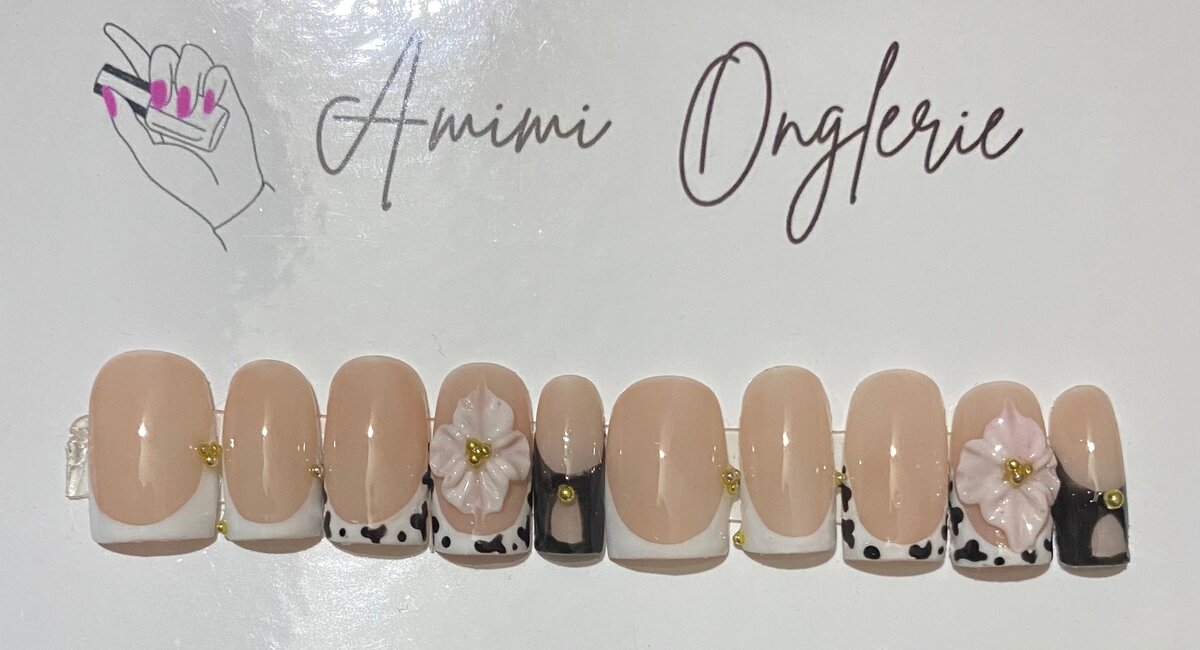 Transformez vos ongles avec ces élégantes ongles press-on floraux. Faciles à appliquer, elles sont parfaites pour sublimer vos mains en un instant. Le design fleuri et les détails dorés ajoutent une touche chic, adaptée pour toutes occasions.