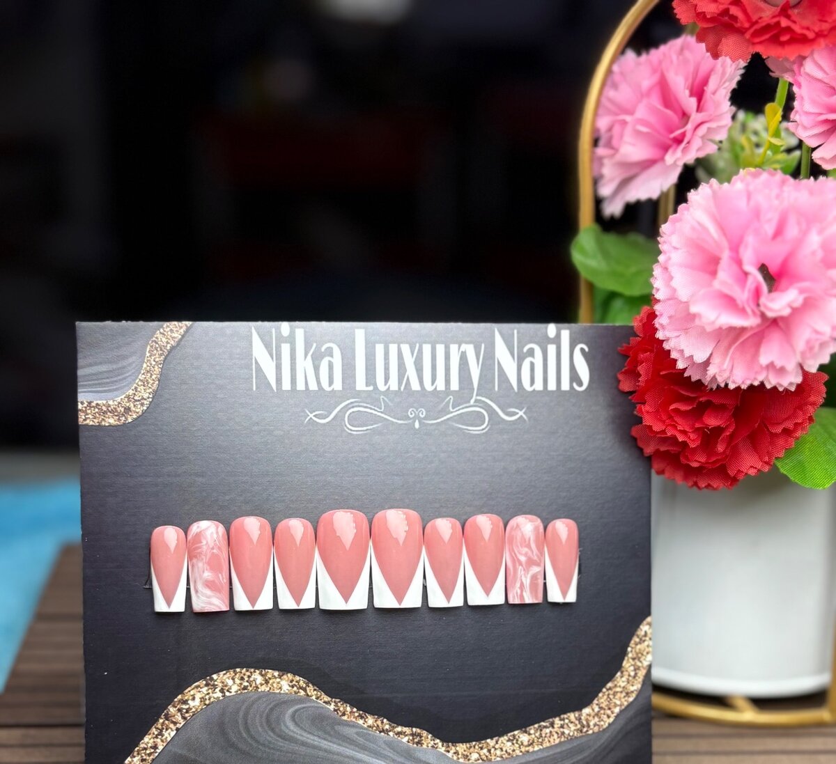 Découvrez la beauté instantanée avec nos ongles press-on à finition française. Faciles à appliquer, ils transforment vos mains en un clin d'œil pour un look sophistiqué et élégant. Parfaits pour toutes les occasions, ces ongles sont durables et réutilisables, offrant une solution pratique et tendance pour sublimer vos ongles sans effort.
