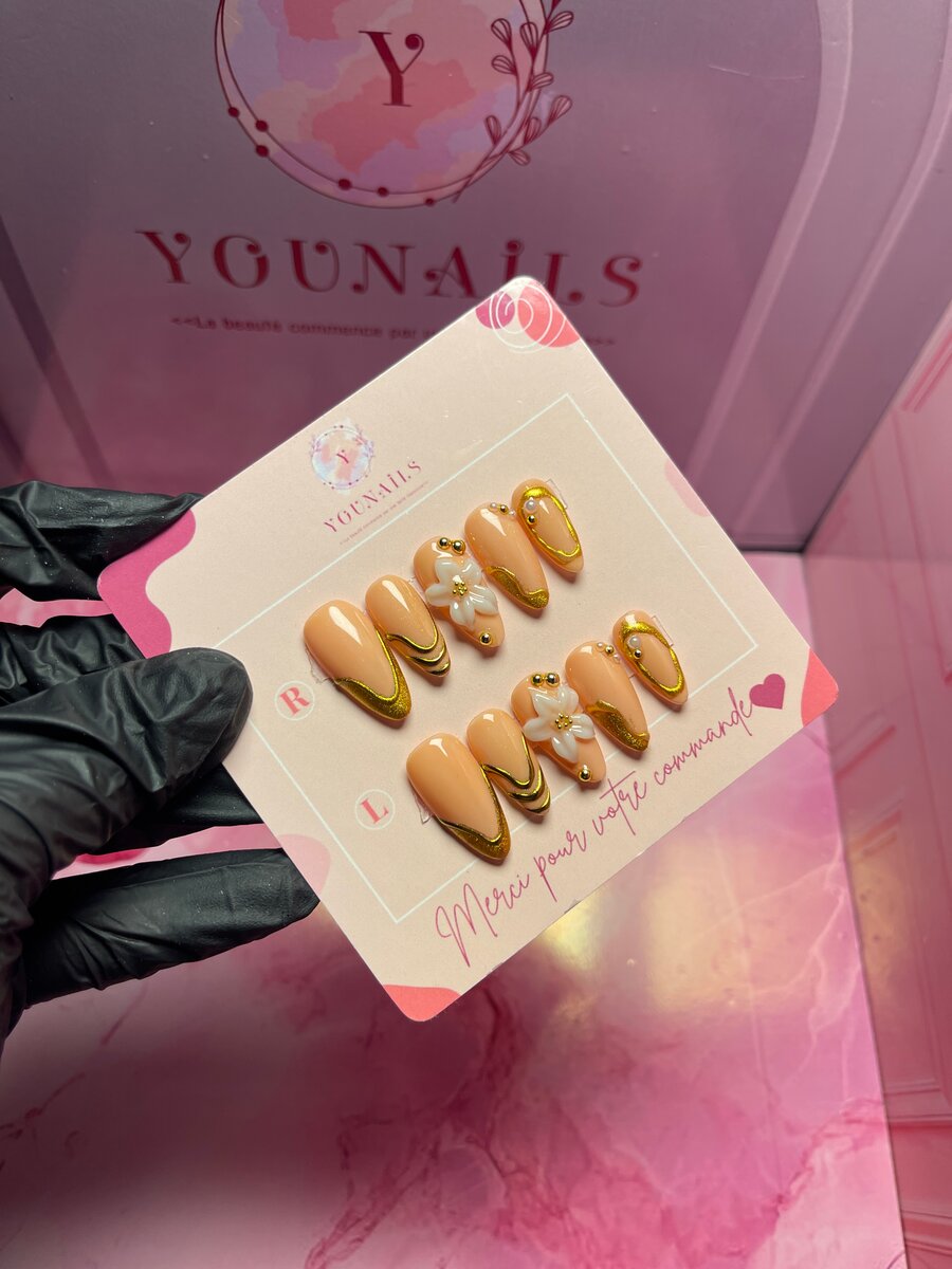 Sublimez vos ongles avec ces élégants press-ons au design doré et perlé. Faciles à appliquer et parfaits pour toutes les occasions, ces faux ongles offrent style et praticité. Idéal pour un look sophistiqué ou une sortie spéciale.