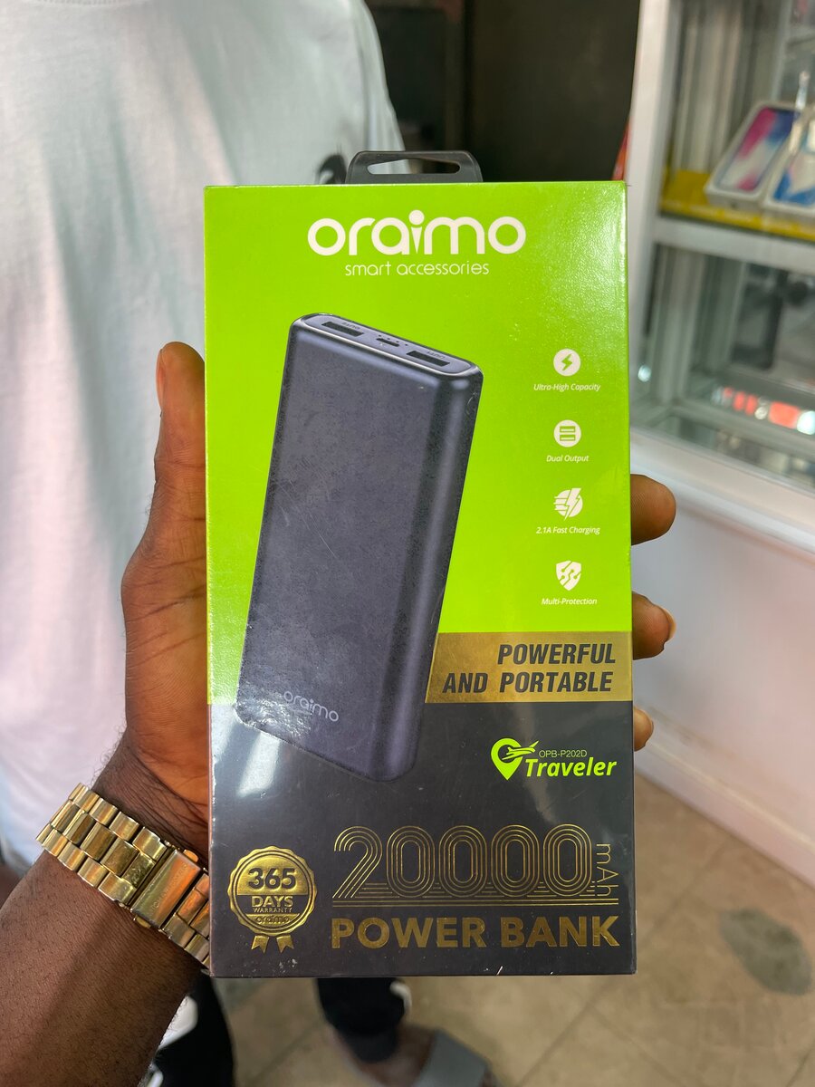 Stay connected on the go with the Oraimo 20000mAh Power Bank. Perfect for travelers needing quick charging and multiple device support. Features dual USB outputs and robust safety system. Ideal for smartphones and tablets.