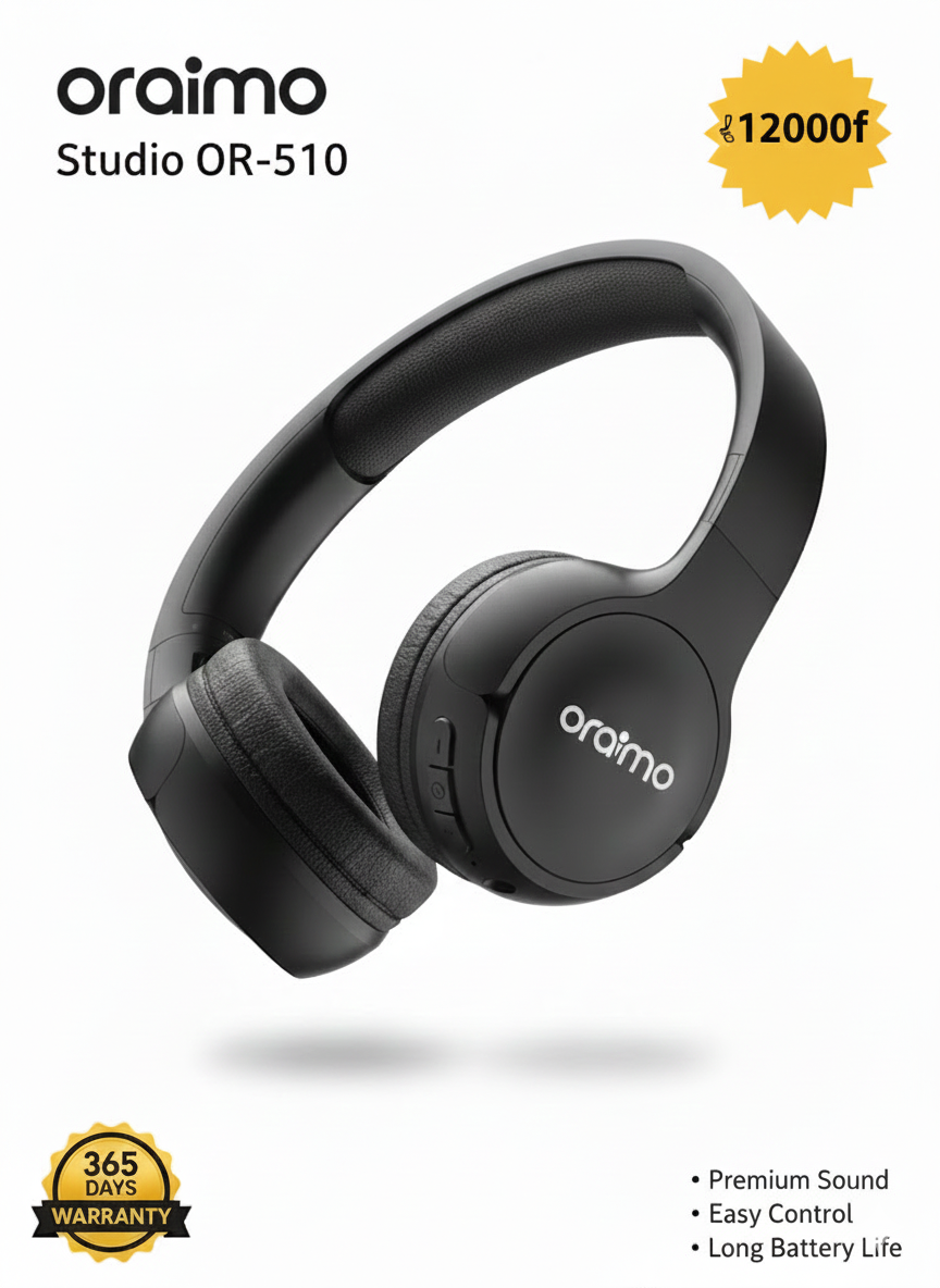 Plongez dans un son de qualité studio avec le casque Oraimo OR-510. Conçu pour offrir un contrôle facile et une autonomie prolongée, il est idéal pour les audiophiles et les professionnels. Profitez d'un confort suprême et d'une garantie de 365 jours.