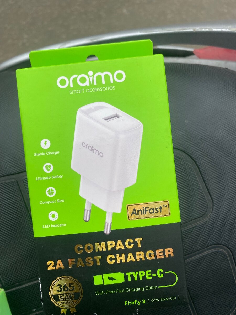 Optez pour le chargeur rapide Oraimo 2A avec connectique Type-C. Idéal pour un chargement stable et en toute sécurité, grâce à sa taille compacte et son indicateur LED. Parfait pour la maison ou en déplacement.