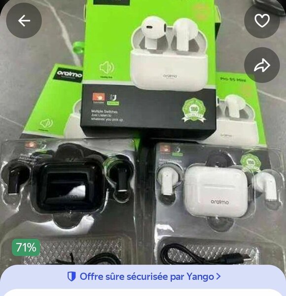Profitez d'un son immersif avec les écouteurs sans fil Oraimo. Dotés de basses puissantes et d'une autonomie de 50 heures, ils sont parfaits pour une utilisation quotidienne prolongée. Leur design confortable offre une expérience d'écoute optimale. Idéal pour le sport et les déplacements.
