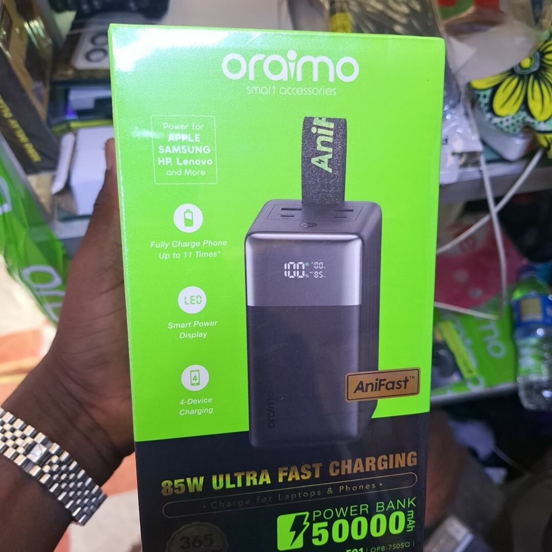 Offrez à vos appareils un chargement ultra-rapide et puissant avec le Power Bank Oraimo 85W et 50000mAh, parfait pour les ordinateurs portables et smartphones. Idéal pour les voyages ou les journées intensives. Un choix essentiel pour rester connecté à tout moment.