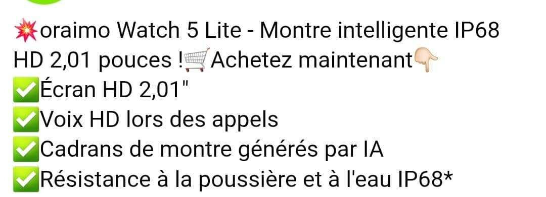 Découvrez l'Oraimo Watch 5 Lite, une montre intelligente avec écran tactile HD de 2,01 pouces et résistance IP68. Parfait pour un usage quotidien avec voix HD et cadran IA.