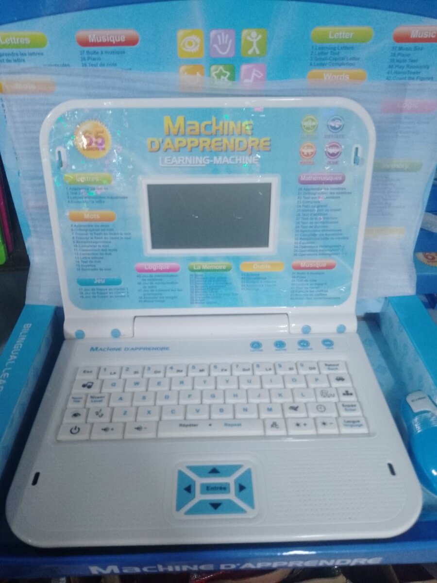 Ordinateur éducatif avec 65 jeux interactifs pour enfants de 3 ans et plus. Apprentissage du français, anglais, mathématiques et musique. Parfait pour éveiller la curiosité et l'intellect.