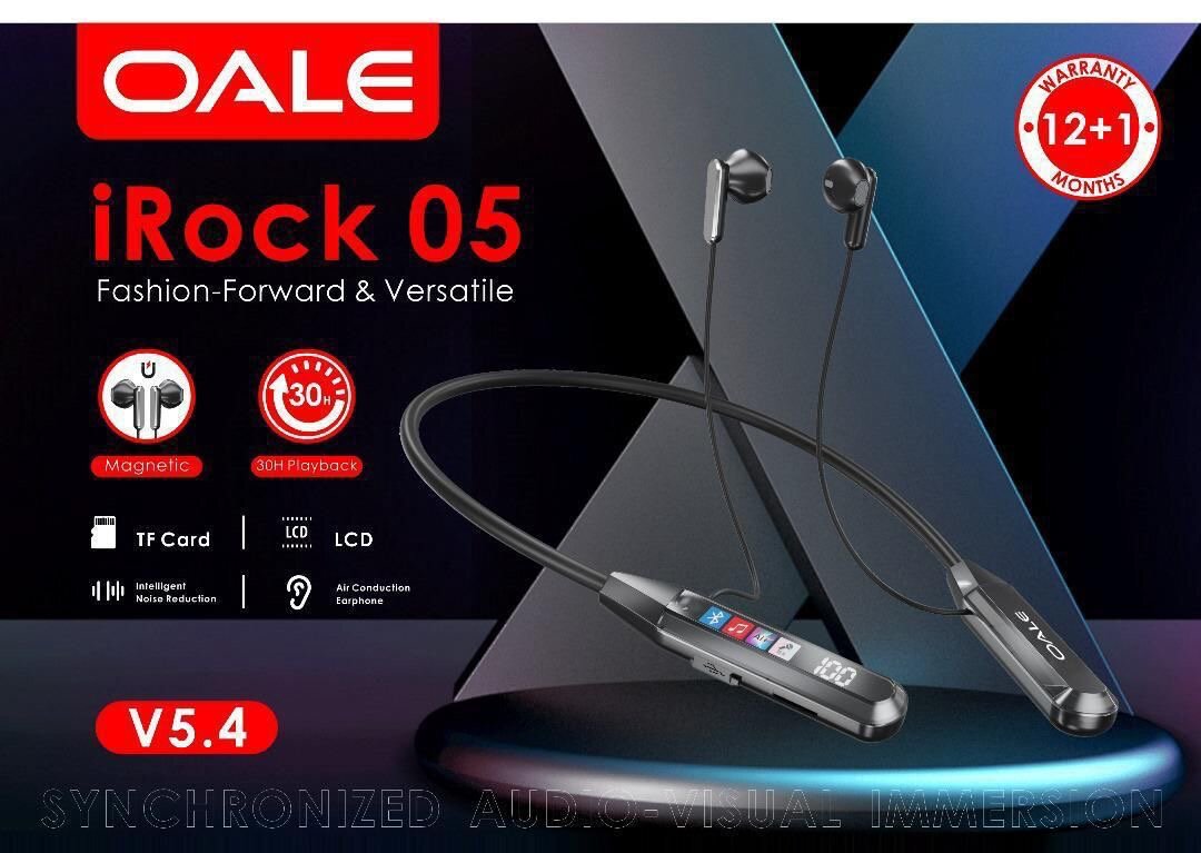 Découvrez les oreillettes sport OALE iRock 05, idéales pour une immersion audio de haute qualité. Avec 130h de lecture, témoin LCD, et design magnétique.